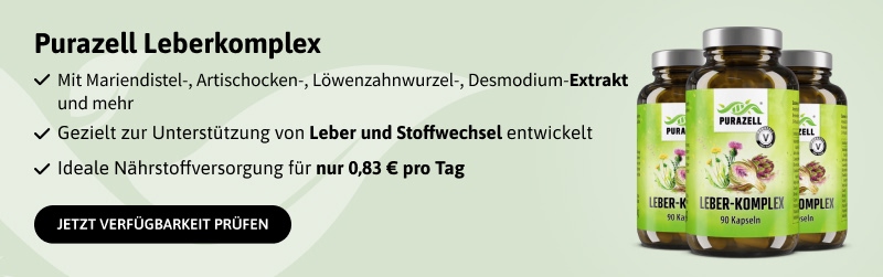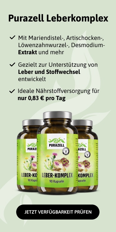 Artischockenblattextrakt gilt als natürliche Hilfe bei einer Fettleber. Studien (2)(3) zeigen, dass er die Leberwerte verbessern und den Fettstoffwechsel positiv beeinflussen kann.
