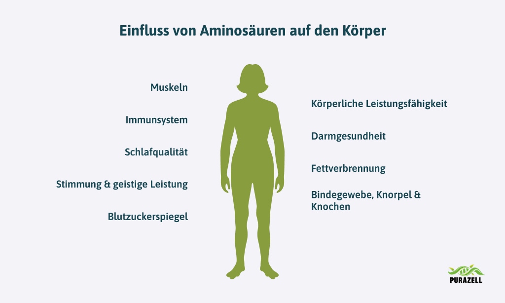 Aminosäuren spielen dabei eine zentrale Rolle, denn sie werden an vielen verschiedenen Stellen im Körper benötigt und bilden die Grundlage für Hormone, Enzyme und zahlreiche Stoffwechselprozesse.