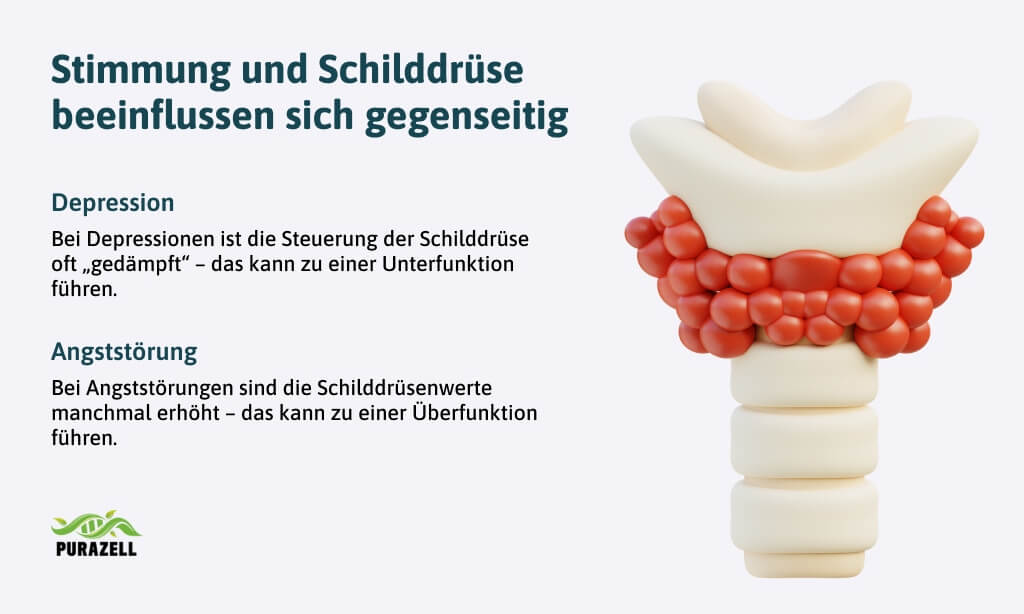 - Wer unter Depressionen oder Angst leidet, hat ein deutlich erhöhtes Risiko, später eine Schilddrüsenerkrankung zu bekommen (1).