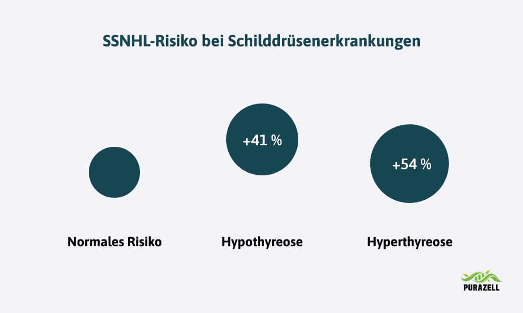 Das bedeutet: Sowohl eine Unter- als auch eine Überfunktion der Schilddrüse können das Innenohr anfälliger für plötzliche Hörverluste machen.