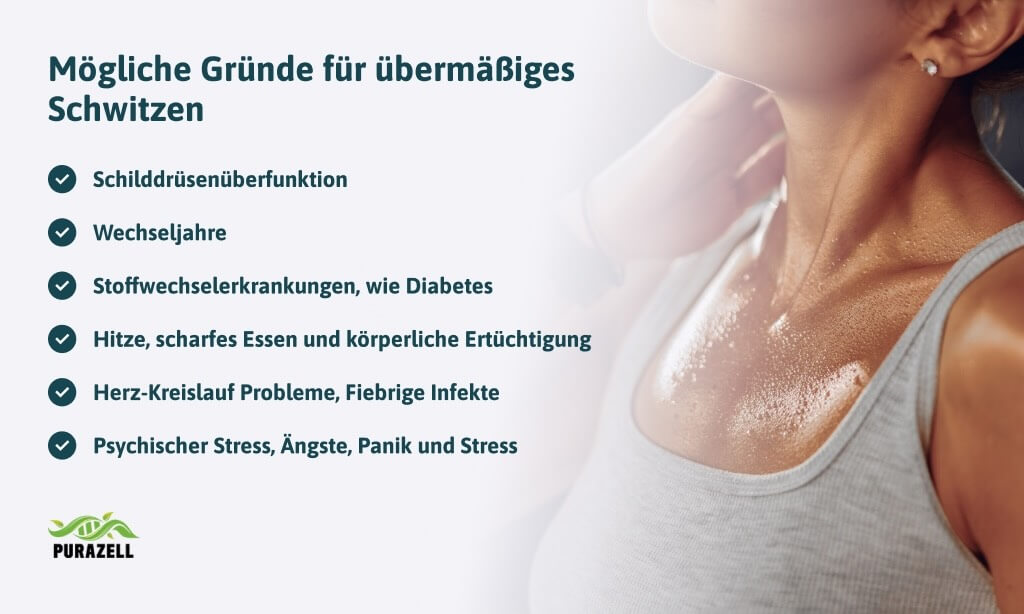 Schwitzen im Gesicht sowie im Bereich von Hals und Nacken ist nicht ausschließlich auf die Schilddrüse zurückzuführen, sondern kann auch Ausdruck anderer körperlicher oder hormoneller Prozesse sein, bei denen die Regulation von Stress, Stoffwechsel und Nervensystem aus dem Gleichgewicht gerät, zum Beispiel bei: