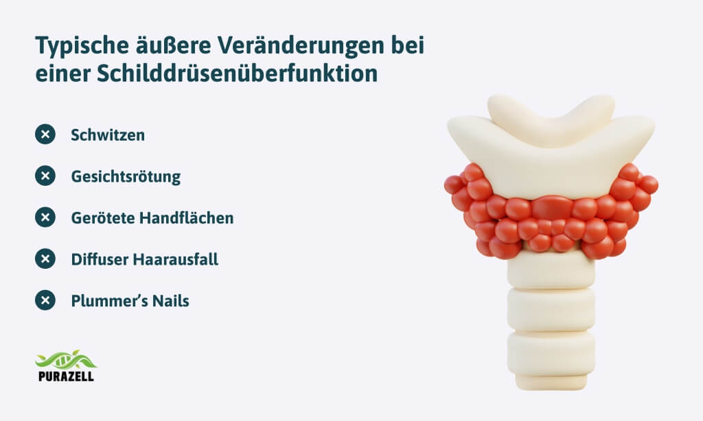Diese äußeren Zeichen sind Ausdruck der gesteigerten Durchblutung, des erhöhten Stoffwechsels und der hormonellen Überstimulation.